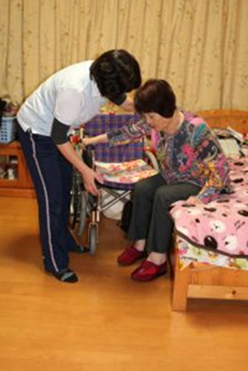 立ち上がりにどのくらいの介助が必要なのかを把握し、できない部分を手伝うことで、「できること」が維持・継続できるように支援します。