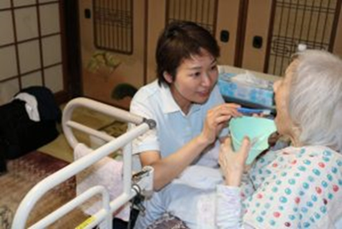 食事や水分摂取の状況を伺いながら歯磨きの声かけや介助を行い、おいしく食事が摂れ、健康が維持できるように支援します。